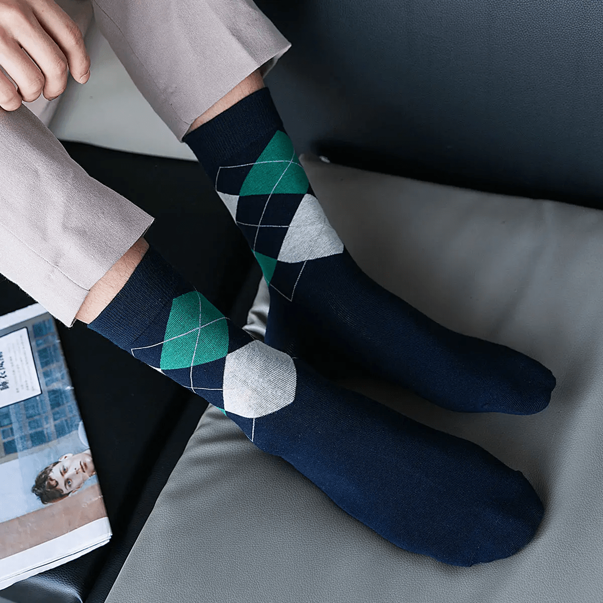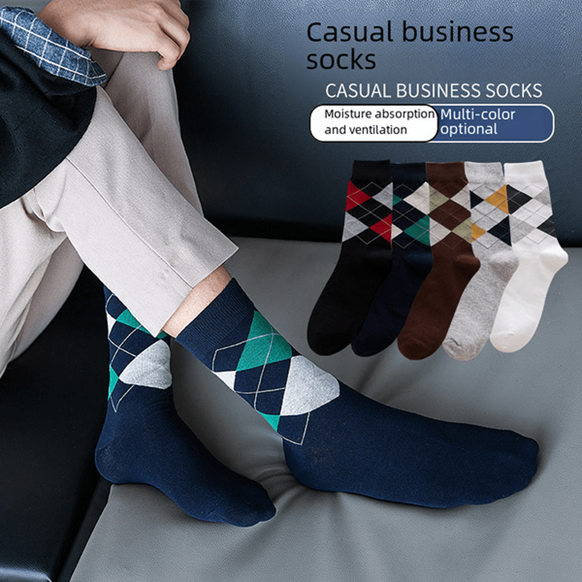 Men’s Classic Diamond Business Socks – All-Season Cotton Comfort